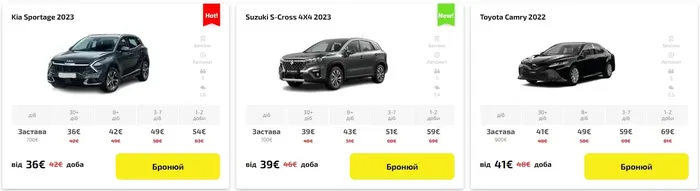 - Забронювання: Забронюйте авто на сайті, обираючи дату та тривалість оренди.