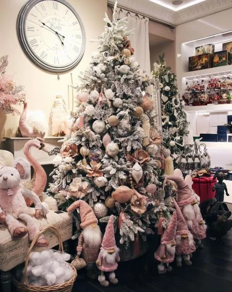 - Андорра. Стильное искусственное деревце с эффектом заснеженности. Выглядит удивительно сказочно, вызывая положительные эмоции у ценителей прекрасного. Эффектно смотрится с ярким контрастным декором. В то же время можно украсить модель игрушками и шариками в пастельных тонах.